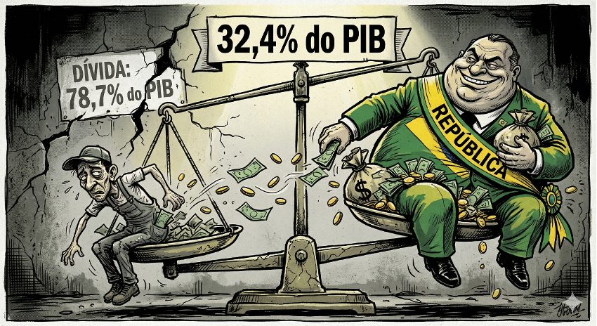 Por fim, o aumento da carga tributária para estabilizar a dívida pública seria, em certas condições, um esforço aceitável para reduzir o risco fiscal. No entanto, o governo também não logrou êxito nesse aspecto. A relação dívida-PIB saltou de 76,3% em 2024 para 78,7% em 2025, demonstrando que o problema fiscal brasileiro nunca foi de receita.