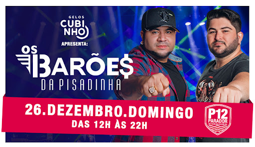No dia 26 de dezembro (domingo), a partir das 12h, Os Barões da Pisadinha desembarcam pela primeira vez no P12 para abrir a temporada de verão do parador em Jurerê Internacional. A dupla faz o primeiro show de uma das maiores agendas do país. Nesta temporada 2021/22, o P12 apresenta uma sequência de mais de 30 shows nacionais e internacionais.