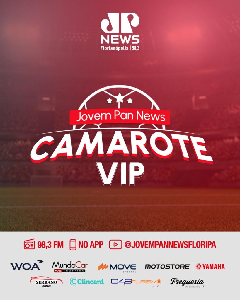 Projeto consolidado, o evento também cresce a cada temporada com o fortalecimento das parcerias. O diretor comercial Vladimir Caetano destaca a importância do apoio das empresas e reforça que o espaço segue aberto para novos parceiros interessados em integrar a iniciativa. O Camarote VIP terá edições ao longo de toda a temporada, com transmissão ao vivo pelo YouTube da Jovem Pan News Florianópolis, pelo aplicativo da emissora e no dial 98,3 FM. Logo após o programa, a programação segue com a jornada esportiva da Série A do Campeonato Brasileiro. Futebol JP 2026 e Camarote VIP têm apoio de Clincard, Costão do Santinho, Freguesia Bar e Restaurante, Motostore Yamaha, Move Energia, MundoCar Mais Shopping, Serrano Pneus, WOA e 048 Turismo.