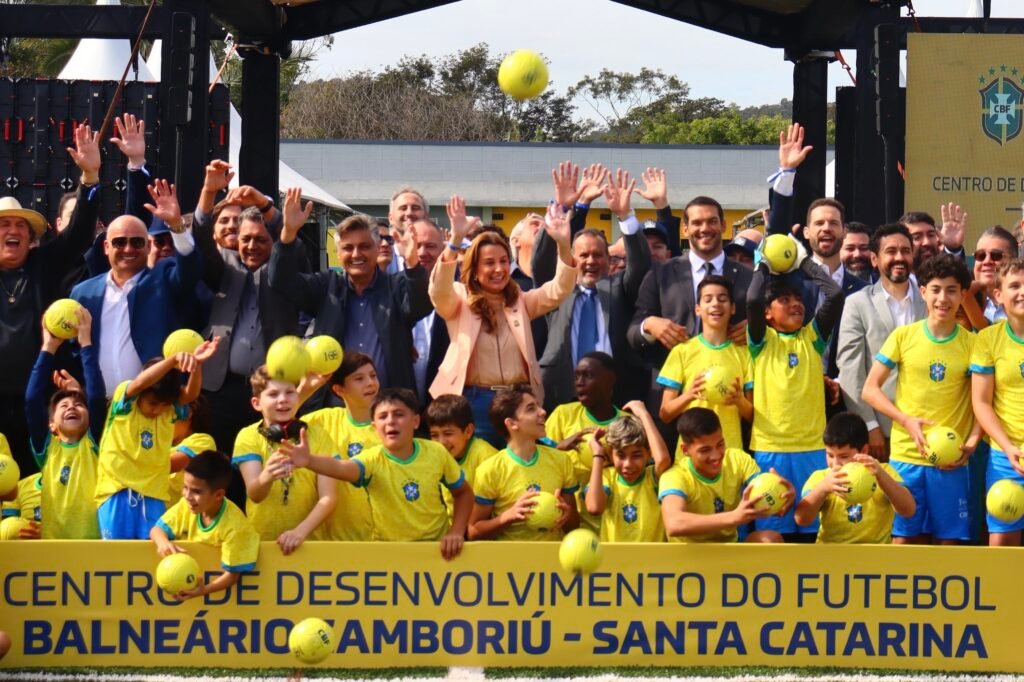 O futebol catarinense viveu um momento histórico nesta sexta-feira (15), com a entrega oficial do Centro de Desenvolvimento do Futebol (CD) de Santa Catarina, em Balneário Camboriú. O espaço, construído por meio do Fundo de Legado da Copa do Mundo de 2014, foi viabilizado em parceria entre a FIFA, CBF e Federação Catarinense de Futebol (FCF), com a Prefeitura de Balneário doando o terreno. A inauguração foi marcada por festa, emoção e a presença de autoridades, ex-jogadores campeões mundiais e dezenas de crianças, reforçando o caráter comunitário e inspirador do projeto.