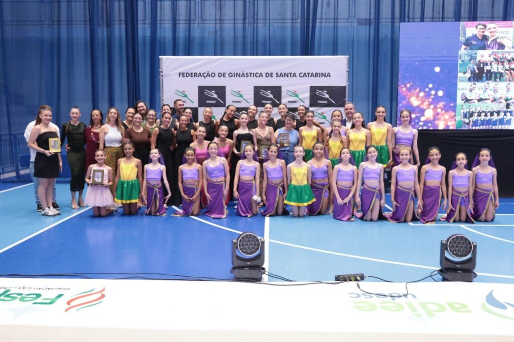 A Federação de Ginástica de Santa Catarina condecorou atletas, equipes, técnicos e árbitros com a premiação “Melhores do Ano de 2025”, em evento realizado nesta quinta-feira (11). O evento foi realizado no ginásio Rozendo Lima, em Florianópolis.