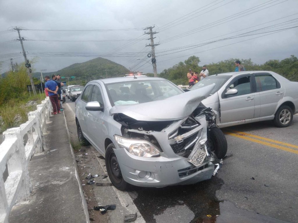 Um acidente entre dois veículos deixou dois motoristas feridos na SC-402, Rodovia Maurício Sirotsky Sobrinho, em Florianópolis, nesta segunda-feira (11). Os dois veículos bateram de frente na rodovia que liga até a praia de Jurerê. Segundo o relato da PMRv (Polícia Militar Rodoviária), que atendeu o acidente, um Fiat Siena colidiu com uma mureta e invadiu a pista contrária, batendo na frente de um Chevrolet Cobalt. Os dois condutores ficaram feridos e foram levados ao hospital.