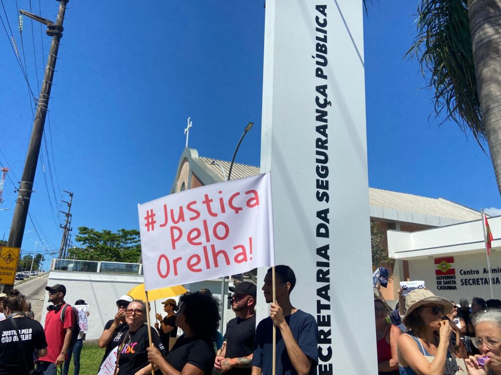 Cerca de 200 manifestantes se reuniram em frente à Secretaria de Segurança Pública de Florianópolis, na avenida Governador Ivo Silveira, durante a tarde desta terça-feira (10). A pauta do protesto é a vagarosidade no decorrer do caso do cão Orelha, morto na Praia Brava em janeiro deste ano.