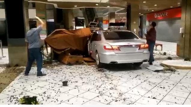 Imagens da Guarda Municipal mostram que o homem seguiu com o veículo até o hall central, atingindo um quiosque. Apesar de ninguém ficar ferido, um segurança do shopping quase foi atropelado.