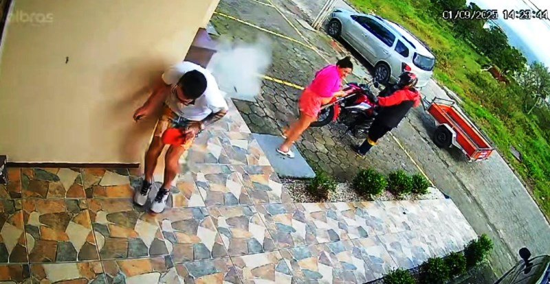 Além disos, as imagens mostram que duas pessoas estavam na portaria do prédio no momento em que Filipi estaciona a caminhonete. Uma delas é um motoboy que fazia uma entrega justamente para Filipi e a esposa. O casal desce do carro e Juliana conversa com o entregador. Filipi segue caminhando até o portão de entrada, onde ocorre o primeiro disparo.