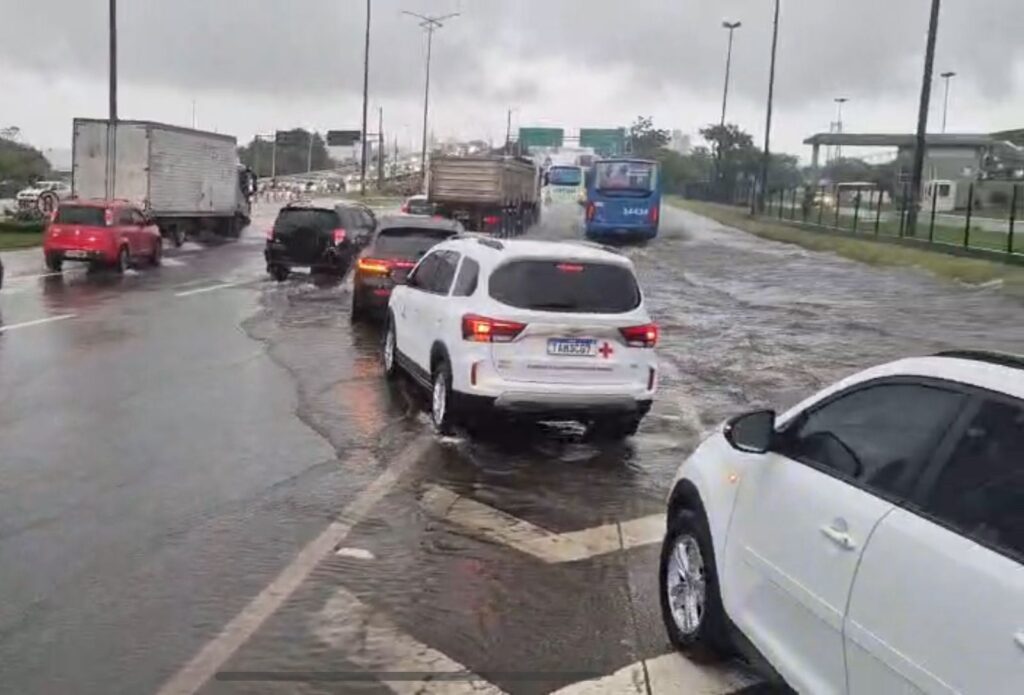 Durante a manhã, imagens também mostraram um alagamento na saída da Ponte Colombo Salles, em direção à ilha, e na Avenida Rio Branco, no centro de Florianópolis.
