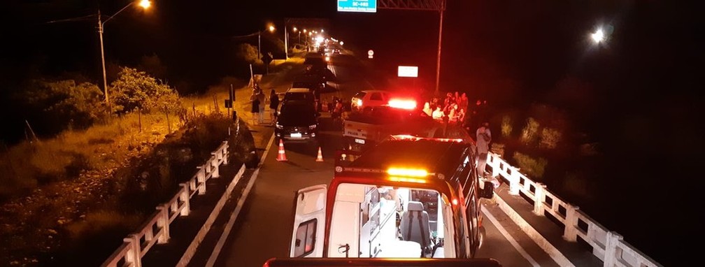 Um motociclista morreu em uma colisão frontal com um carro no km 0,250 da SC-402, no Norte da Ilha, por volta das 22h desta quinta-feira (29). Segundo a Polícia Militar Rodoviária (PMRv), a moto tentou fazer uma ultrapassagem em local proibido, na ponte sobre o Rio Ratones, quando bateu no veículo. O piloto morreu na hora, e a passageira da moto foi arremessada para o rio.