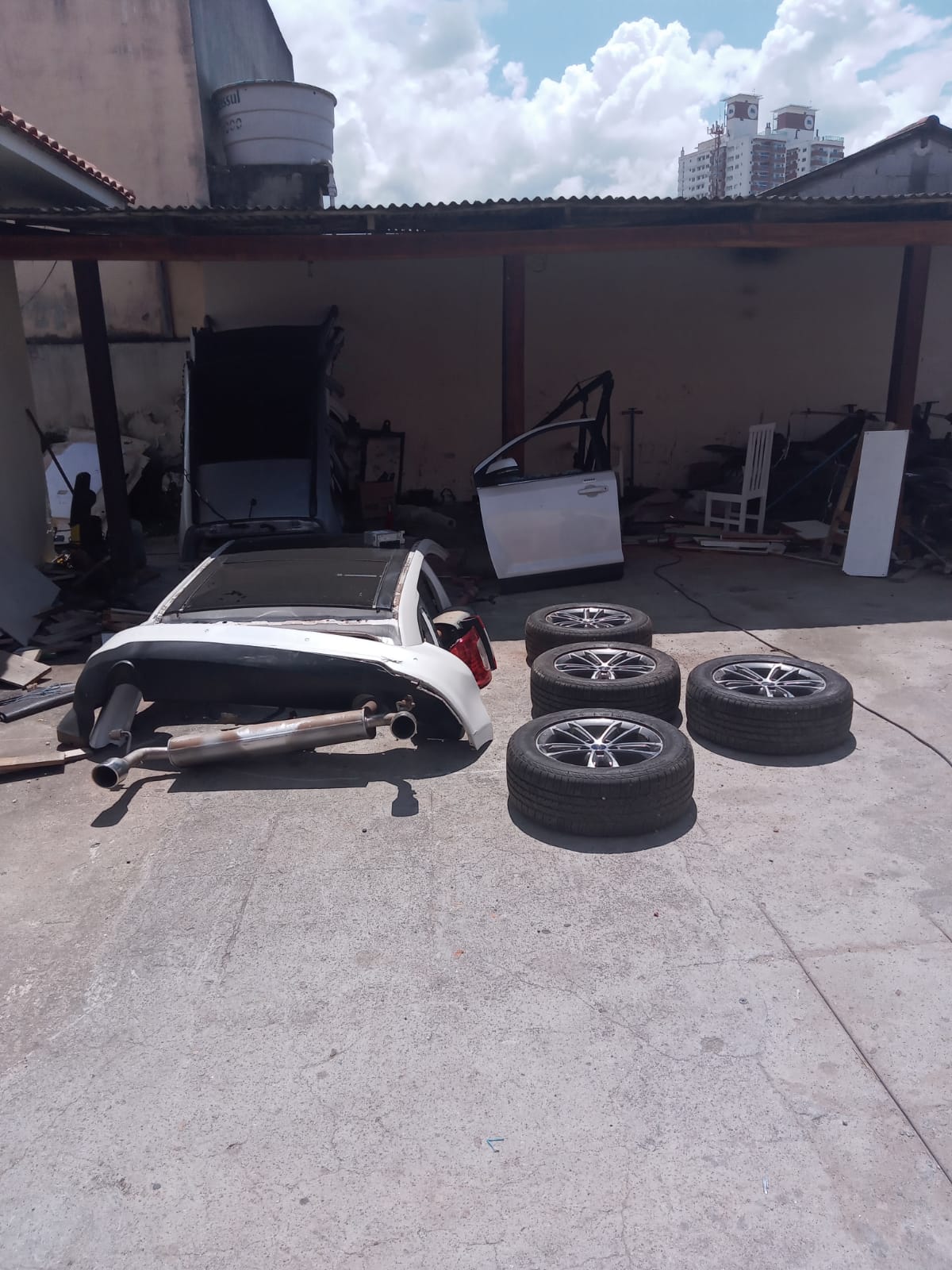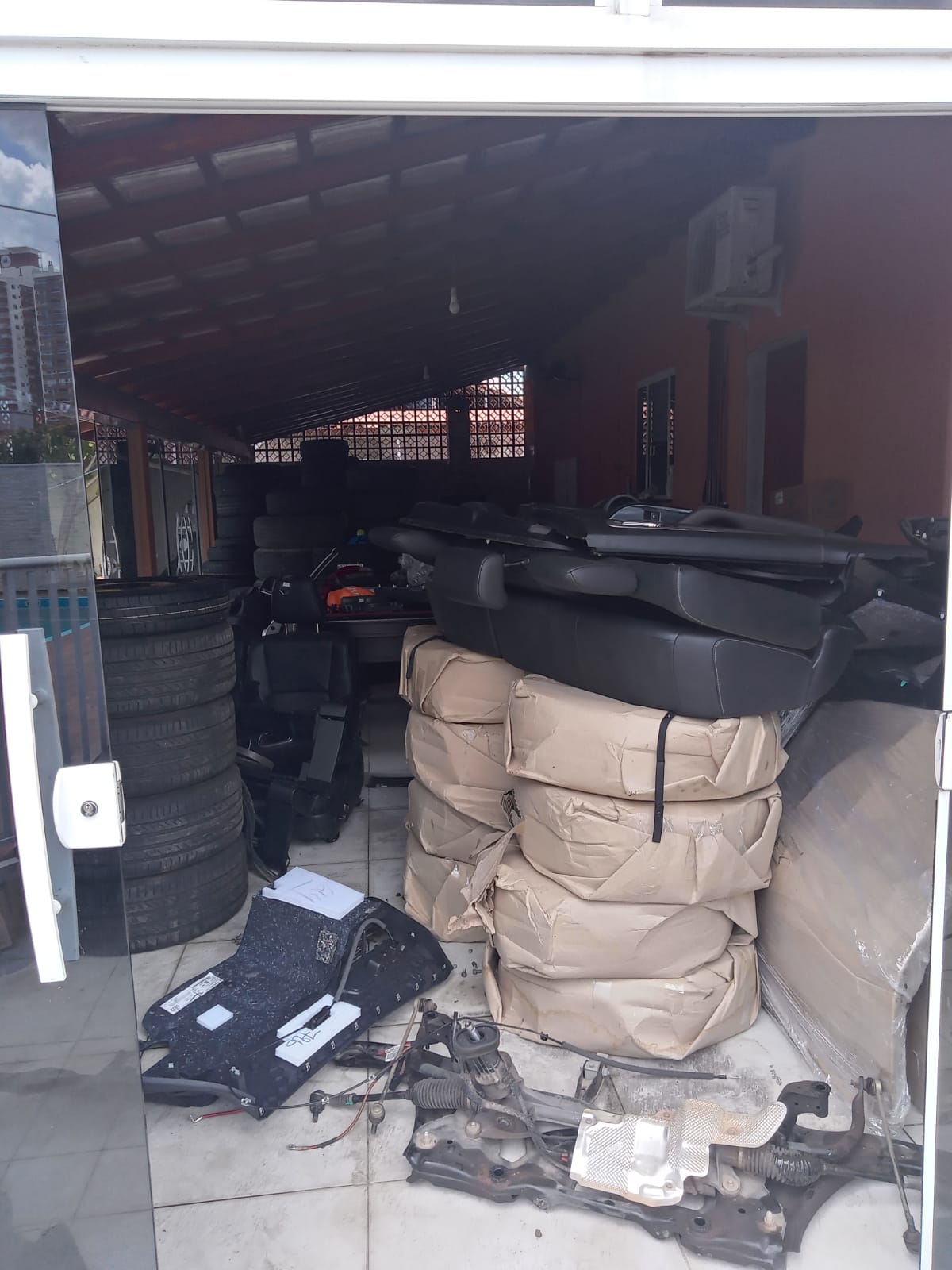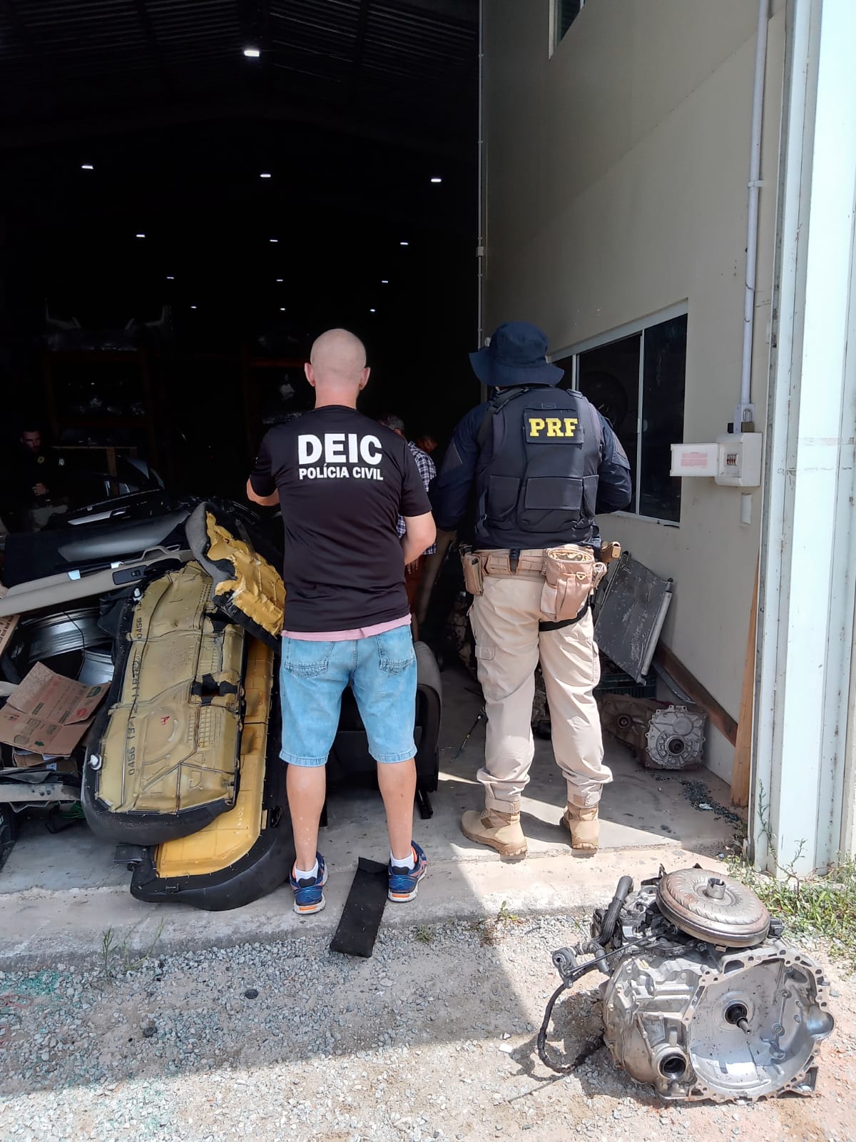 Os policiais encontraram partes de uma Ford Edge e de uma Kia Sportage, roubadas em Porto Alegre (RS), e de um Toyota Corolla roubado no Rio de Janeiro. Peças de diversos veículos com sinais identificadores suprimidos e sem a comprovação de origem definida também foram localizadas.