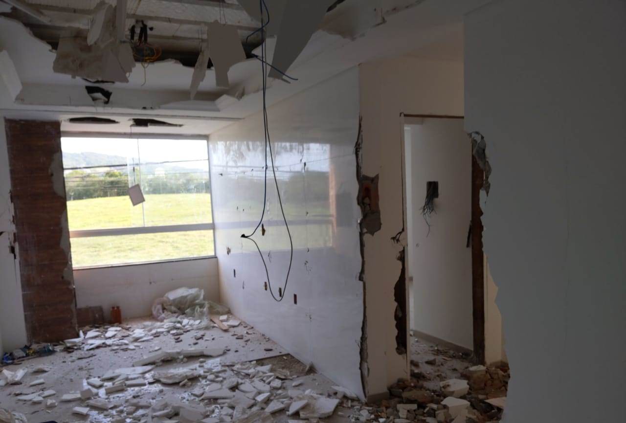 Foi feita a demolição parcial de uma prédio de quatro andares no Bairro Ingleses pela Secretaria Municipal de Desenvolvimento Urbano de Florianópolis, na tarde desta quarta-feira (17). Os apartamentos já estavam em fase de acabamento, prontos para serem ocupados.