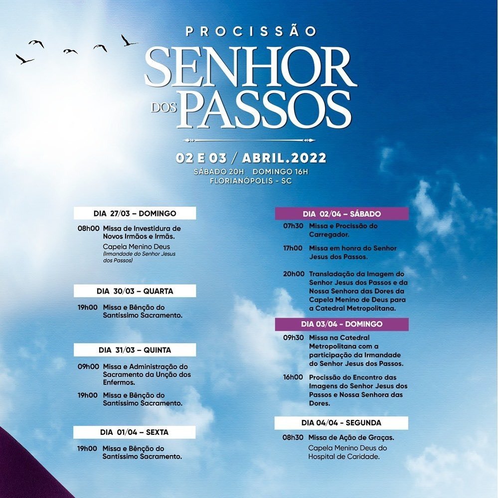 Procissão do Senhor dos Passos volta a acontecer em Florianópolis após dois anos. Em 2020 e 2021, o evento não aconteceu por conta da pandemia. Confira abaixo a programação completa: