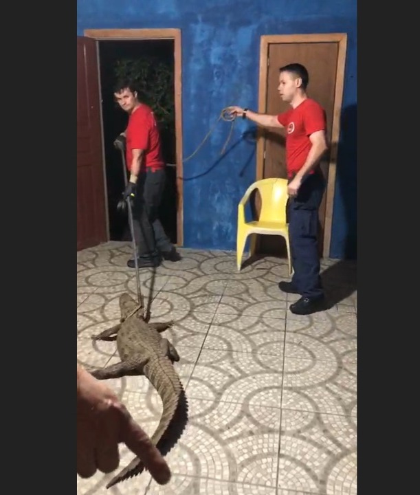 O Corpo de Bombeiros foi acionado na noite desta quinta-feira (4), para ajudar na captura. Este jacaré é considerado de grande porte com 1,6 metro e mais de 50 quilos. Ele foi capturado e devolvido ao habitat natural, mas assustou um morador da área.
