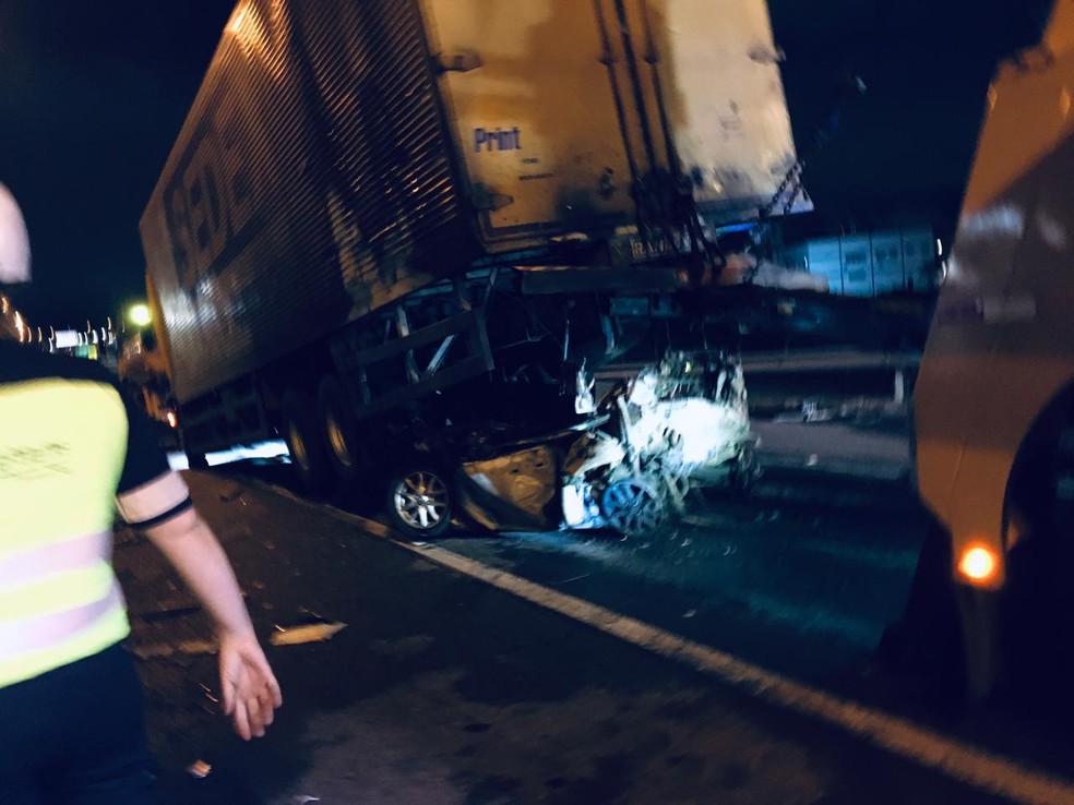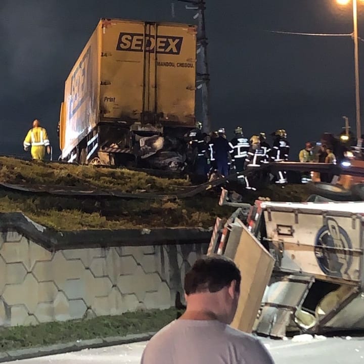 De acordo com o Corpo de Bombeiros, um caminhão dos Correios se colidiu com outro caminhão. Um carro então atingiu o caminhão dos Correios, e foi acertado por uma carreta de aves congeladas. O carro foi esmagado pelo caminhão dos Correios, e os veículos pegaram fogo. Os dois ocupantes do carro morreram. A carreta de aves tombou para a marginal da BR-101, atingindo outro carro. No total, quatro feridos foram levados ao hospital.