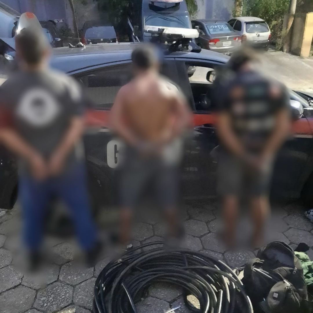 Segundo os agentes, um dos homens fugiu mas foi capturado em seguida. Os suspeitos, os fios e ferramentas utilizadas no furto, uma faca e uma tesoura, foram encaminhados à Central de Polícia para os procedimentos cabíveis.