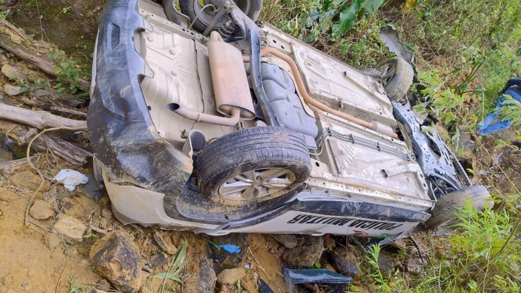Conforme informações do Corpo de Bombeiros, a viatura da polícia teria saído da pista e despencado na ribanceira após capotamento.