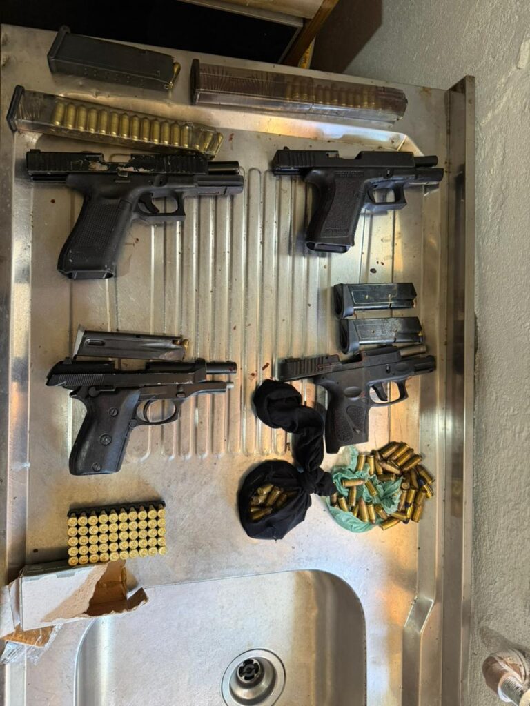 Foram apreendidas quatro armas de fogo, além de mais de 242 munições de diversos calibres, cinco celulares e 20 gramas de maconha.