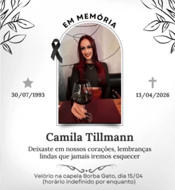 As vítimas foram identificadas como Camila Tillmann, de 32 anos, e Alisson Fernando de Souza da Mota, de 28 anos. Os velórios devem acontecer até quarta-feira (15).
