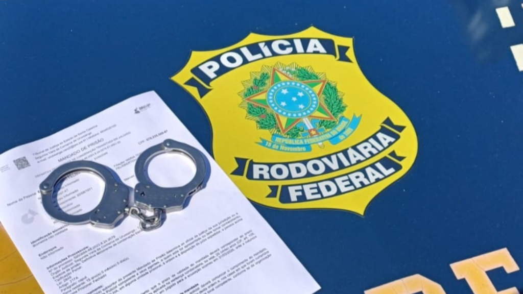 Ao consultar os documentos do motorista nos sistemas, os agentes descobriram que havia um mandado de prisão ativo contra ele, expedido pela 2a Vara da Comarca de Urussanga, sul de SC.