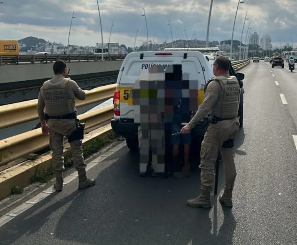 Uma dupla de homens foi flagrada tentando furtar fios de energia da Ponte Colombo Salles, na tarde desta segunda-feira (2). A ponte é uma das três que conecta a ilha ao continente.