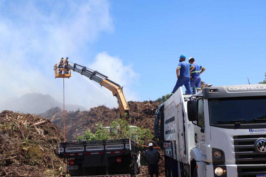 Não há vítimas e não existe risco de o incêndio se espalhar para fora do pátio da Comcap, mas equipes da companhia de lixo e dos bombeiros continuam atuando em meio a fumaça — muitas vezes sem equipamentos adequados —, para tentar contê-la.