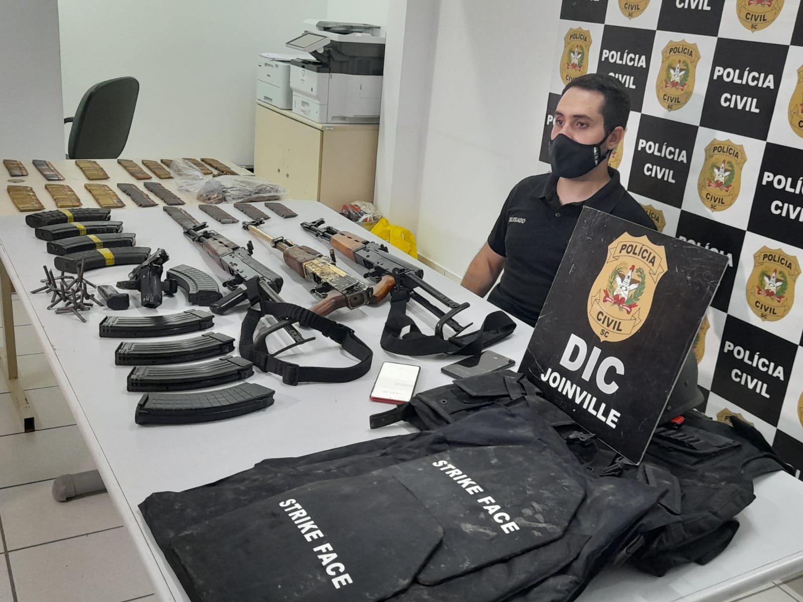 Policiais da Divisão de Investigação Criminal (DIC/PCSC) de Joinville prenderam três homens e apreenderam dinamite, fuzis e veículos blindados em Araquari, município vizinho a Joinville. Segundo a Polícia, o material seria possivelmente utilizado em um mega assalto na região, nos moldes do crime que ocorreu em Criciúma, em 29 de novembro de 2020.