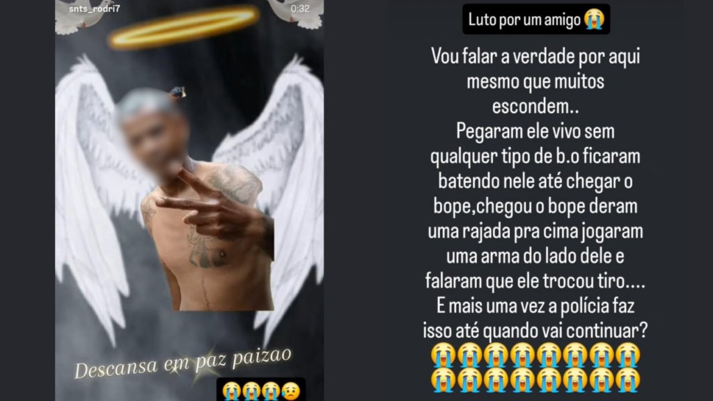 Um dos moradores, por meio de stories no Instagram, relata: “jogaram uma arma do lado dele e falaram que ele trocou tiro… mais uma vez a polícia faz isso, até quando vai continuar?”.