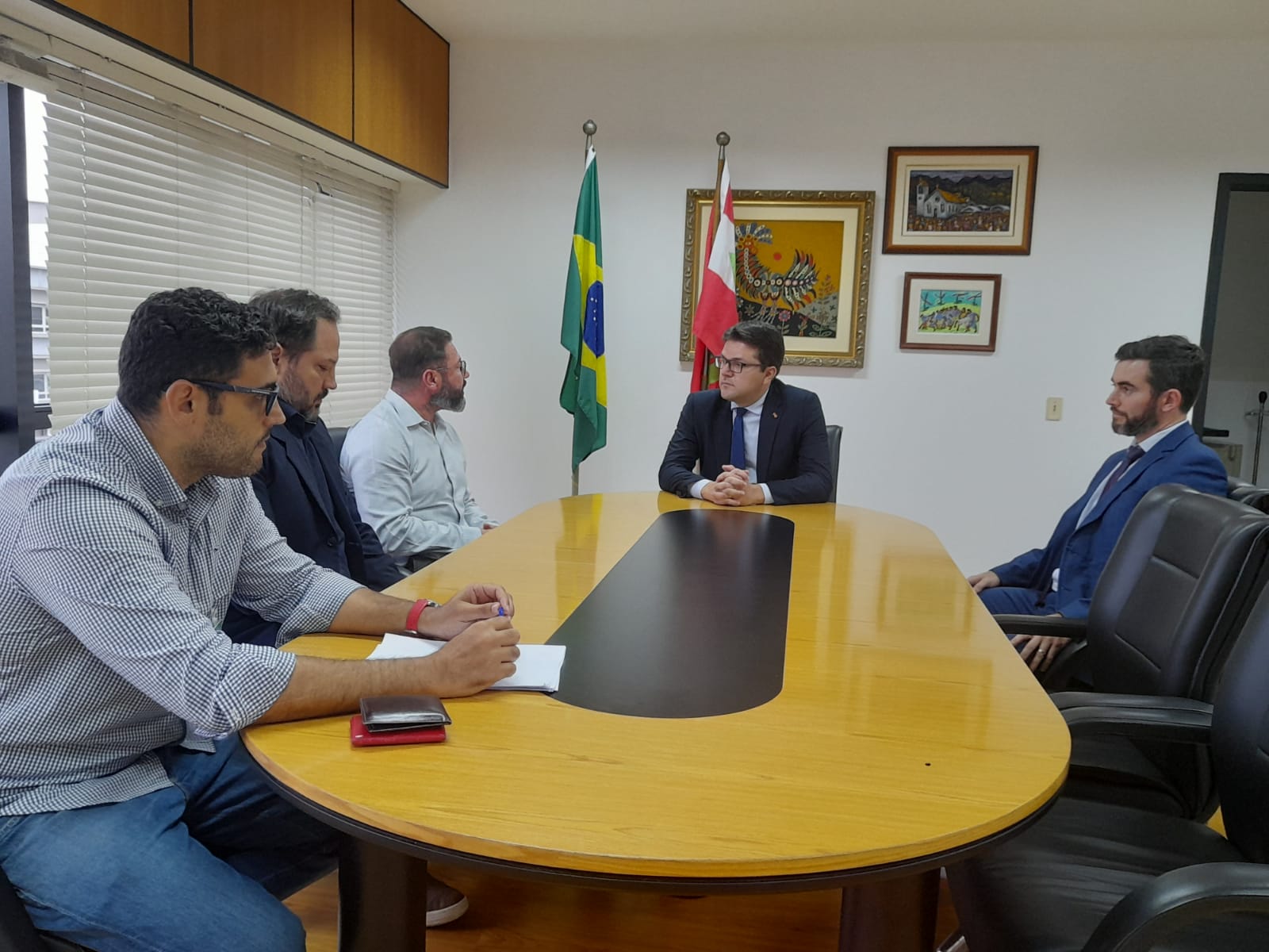 Na tarde de quarta-feira (06), na sede da Procuradoria, em Florianópolis, houve uma reunião entre o delegado-geral da Polícia Civil de Santa Catarina, Marcos Flávio Ghizoni Júnior, e o procurador-geral do Estado, Alisson de Bom de Souza.