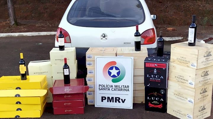A Polícia Militar Rodoviária (PMRv) apreendeu em Campo Erê, no Oeste Catarinense, um carro que transportava 40 caixas de vinho descaminhado vindas da Argentina, na madrugada de quarta-feira (2). A abordagem ocorreu na SC-161.