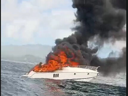 Uma embarcação pegou fogo nesta terça-feira (31), por volta das 8h30 da manhã, no mar da Praia Mole, em Florianópolis. Duas pessoas estavam embarcadas na lancha e tiveram que ser resgatadas pelos salva-vidas.