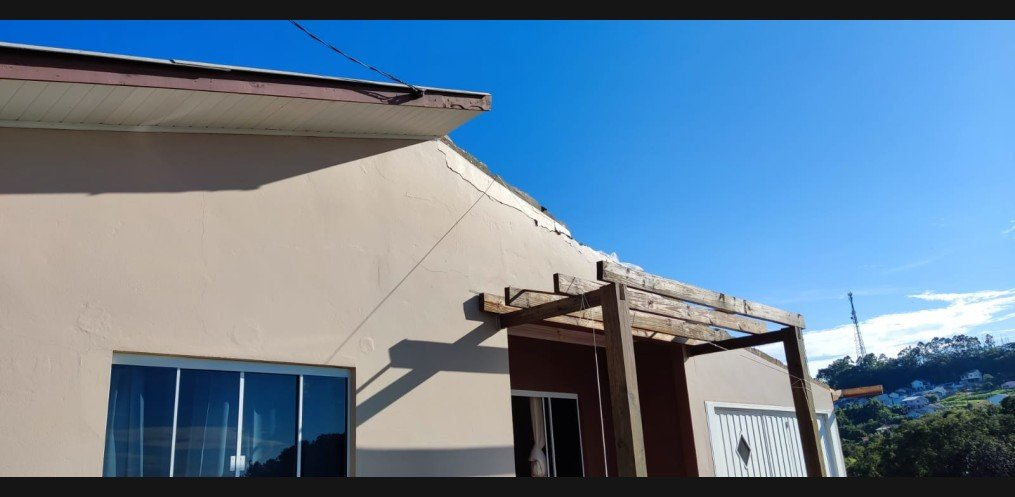 O vento levou as folhas de amianto à cerca de 100 metros da casa, sendo que sobre o telhado estava instalado o sistema solar, o qual também foi arrancado com o vento. No momento do destelhamento, não haviam pessoas em casa e os móveis foram molhados com a chuva. Uma casa próxima também teve problemas no telhado com os ventos.