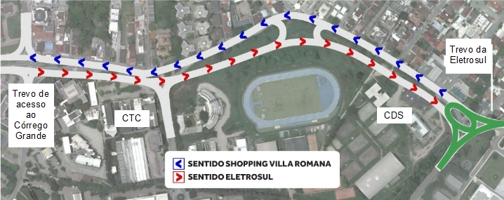 “O trânsito que vem da UFSC logo entrava a esquerda e já ia para o Córrego Grande. Agora ele tem que se manter a direita pra fazer o contorno um pouco mais a frente, para ele poder acessar o Córrego Grande ou sentido Beira-Mar, ou norte da Ilha”, explica Andrey de Souza Vieira, Comandante da GMF.