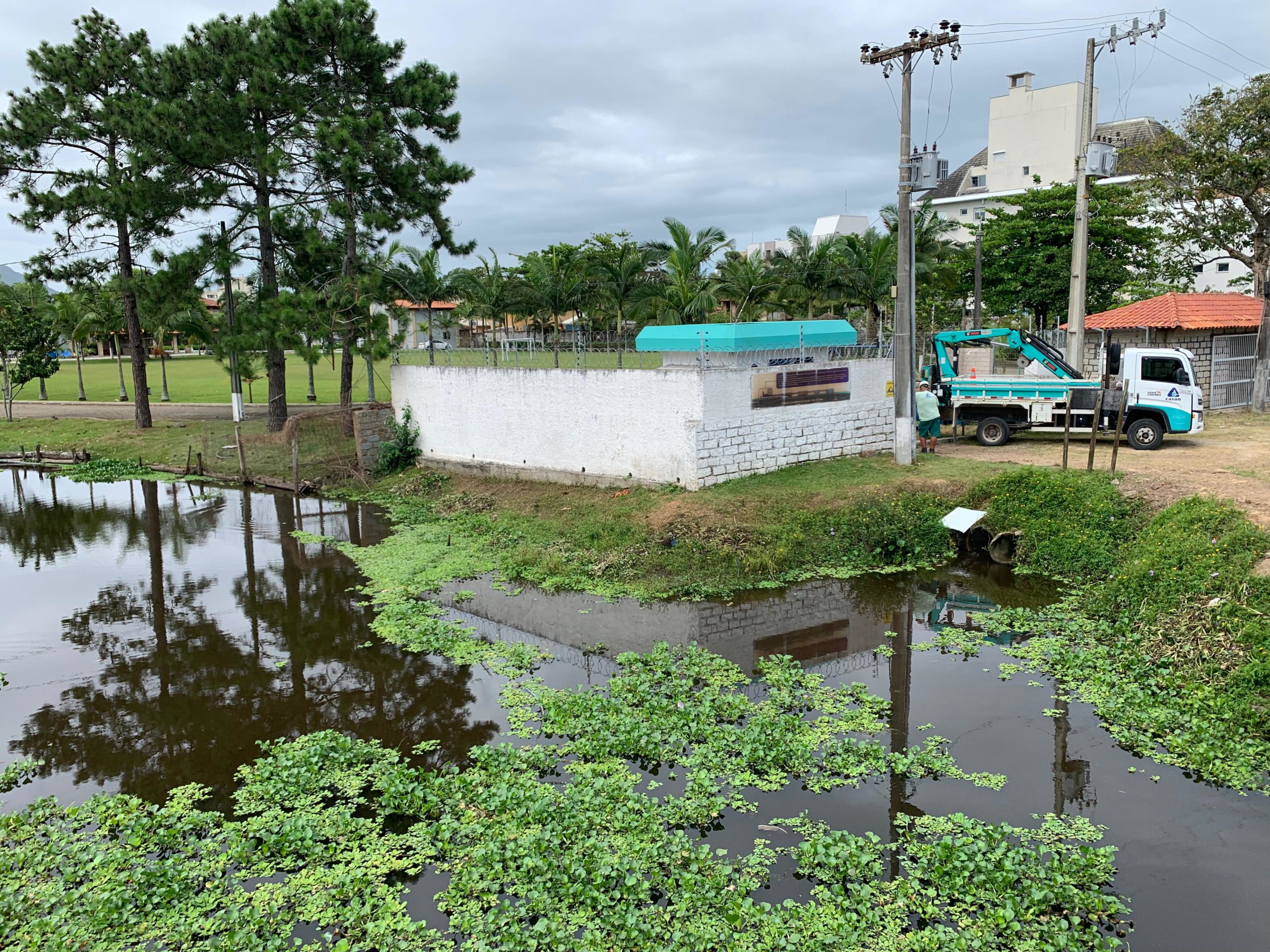 Agora, no final de 2023, diariamente equipes estão trabalhando na Estação Elevatória de Esgoto do Rio do Brás, em Canasvieiras.