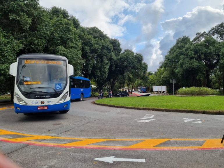 Após as primeiras duas semanas do início da implantação de um corredor exclusivo para a linha de ônibus UFSC Semidireto, a Universidade Federal de Santa Catarina (UFSC) receberá nova rodada de melhorias de sinalização das vias e operação do controle de acesso dentro do Campus Reitor João David Ferreira Lima (Trindade). Conforme informações do Município, as intervenções de sinalização serão executadas nesta segunda-feira, dia 9, à noite. Os espaços contarão com intervenções para melhorar a fluidez do trânsito como novas faixas de pedestres e redução ou delimitação da faixa de circulação exclusiva de ônibus.