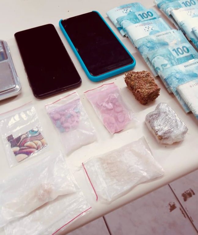 Dois homens foram presos na quarta-feira (9) por envolvimento com tráfico de drogas, no bairro Praia de Fora, em Palhoça. No local, foram apreendidas drogas sintéticas como LSD, ecstasy e MD, uma balança de precisão e dinheiro em notas diversas num total de R$ 28.000,00.