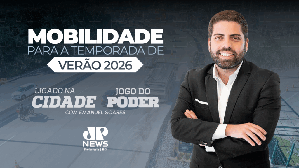 A partir das 10h, os programas recebem convidados para debater os desafios da mobilidade e as perspectivas para a temporada de verão de 2026 em Florianópolis, período em que o tráfego na rodovia costuma aumentar consideravelmente. Florianópolis deve receber 3 milhões de turistas nos meses de calor.