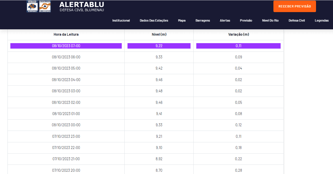 Na madrugada, às 2h45, a medição foi de 9,48 metros – abaixo da projeção que era de 10,20 metros. Depois disso, entrou em declínio e segue baixando.